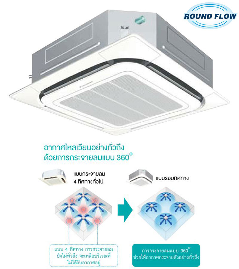 แอร์ Daikin Round Flow Cassette Inverter R32 สวิง 2 ทิศทางคอยล์อะลูมิเนียม